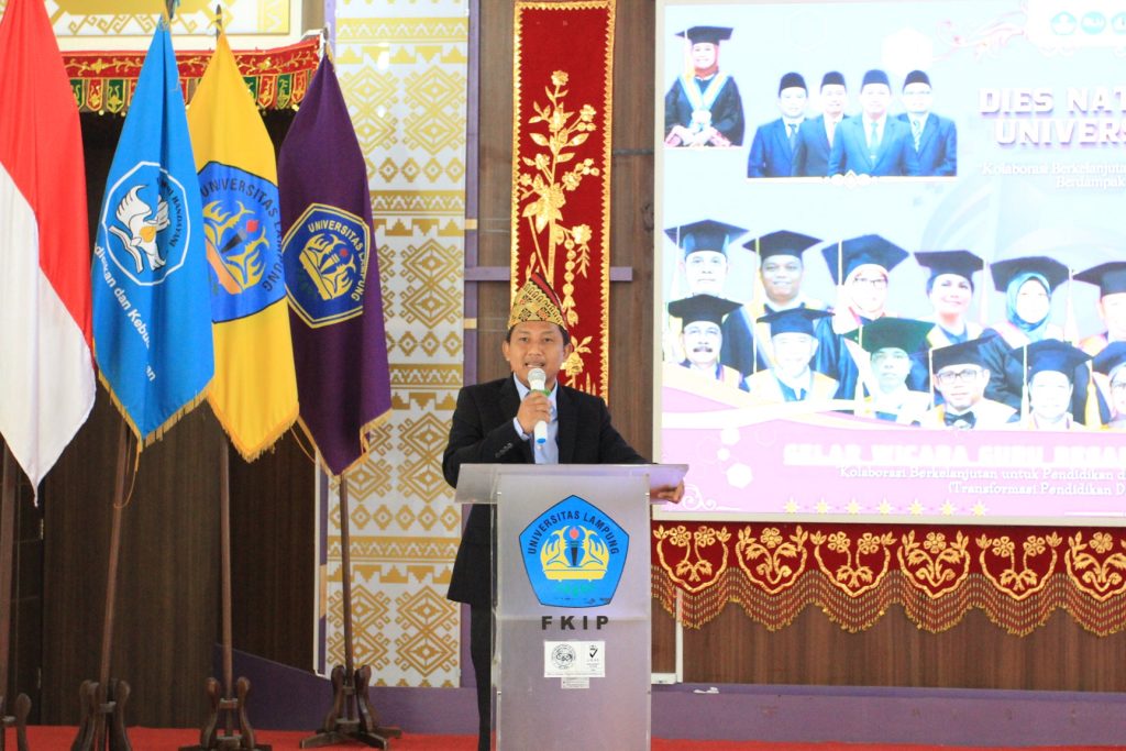 Bandar Lampung, 29 Januari 2026 – Dalam rangka memperingati Dies Natalis ke-58, Fakultas Keguruan dan Ilmu Pendidikan (FKIP) Universitas Lampung (Unila) menyelenggarakan forum akademik bergengsi bertajuk Gelar Wicara Guru Besar. Acara yang berlangsung di Aula K FKIP Unila pada Kamis (29/1) ini mengangkat tema “Kolaborasi Berkelanjutan dalam Mewujudkan FKIP Universitas Lampung Berdampak, Unggul, dan Berdaya Saing Global”.