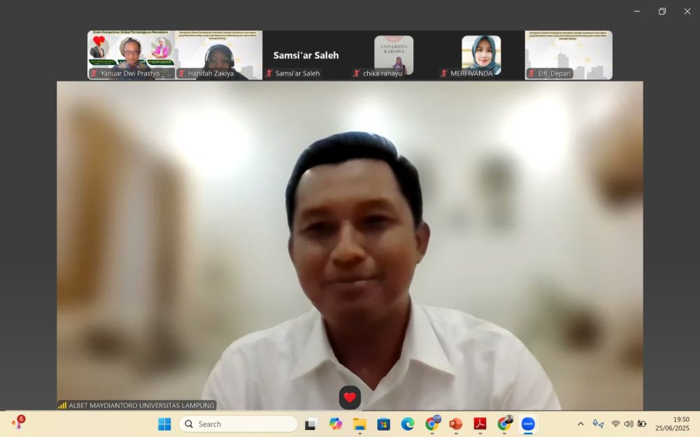 Bandar Lampung, 25 Juni 2025 — Fakultas Keguruan dan Ilmu Pendidikan (FKIP) Universitas Lampung ekerjasama dengan Komunitas DeepLearning Indonesia sukses menyelenggarakan Webinar Nasional bertajuk “Diskusi Mendalam Enam Kompetensi Global Pembelajaran Mendalam (Deep Learning)” yang dilaksanakan secara daring melalui platform Zoom.