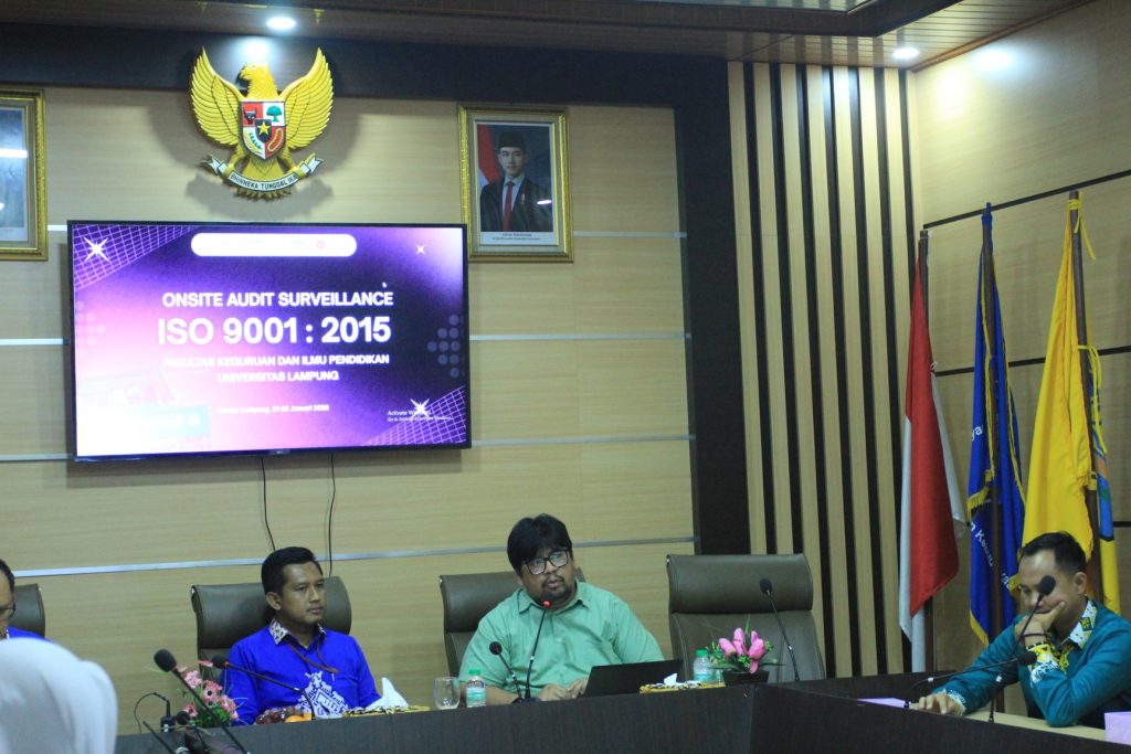 Bandar Lampung, 23 Januari 2026 – Rangkaian kegiatan penjaminan mutu di Fakultas Keguruan dan Ilmu Pendidikan (FKIP) Universitas Lampung (Unila) resmi berakhir hari ini. Kegiatan ditutup dengan pelaksanaan Exit Meeting Onsite Audit Surveillance ISO 9001:2015 yang berlangsung di Ruang Sidang Dekanat FKIP Unila, Jumat (23/1/2026).